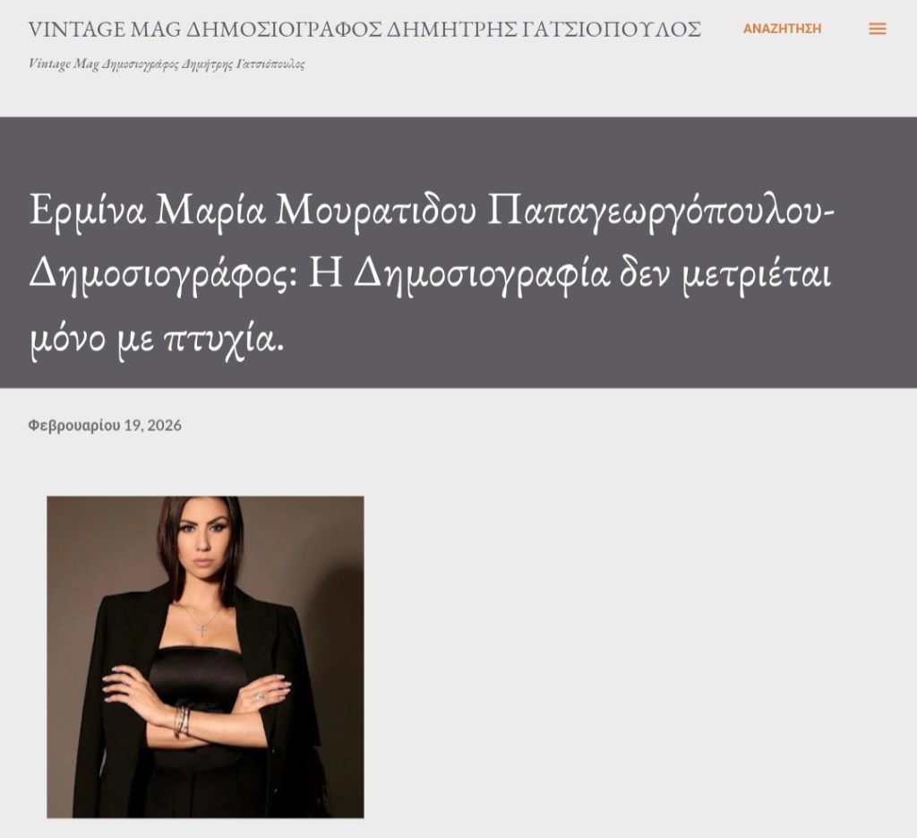 Υπάρχουν στιγμές που η δημοσιογραφία δεν είναι μόνο ρεπορτάζ και τίτλοι, αλλά διάλογος. Μία τέτοια στιγμή ήταν και η πρόσφατη συνέντευξη της δημοσιογράφου του EMVP News, Ερμίνας Μαρίας Μουρατίδου Παπαγεωργοπούλου, στο Vintage Mag και στον συνάδελφο Δημήτρη Γατσιόπουλο.