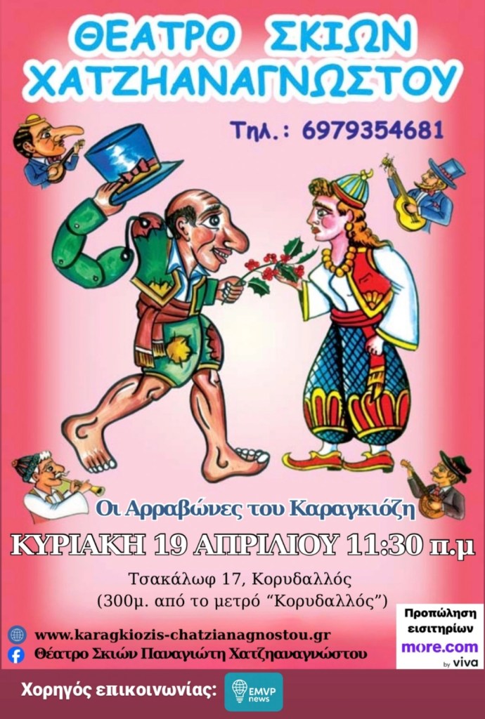 Αυτή την Κυριακή 19 Απριλίου στις 11:30 π.μ., ο καραγκιοζοπαίχτης Παναγιώτης Χατζηαναγνώστου προσκαλεί μικρούς και μεγάλους στο «Στέκι του Καραγκιόζη» στον Κορυδαλλό, σε μια ξεχωριστή παράσταση θεάτρου σκιών με τίτλο «Οι Αρραβώνες του Καραγκιόζη».